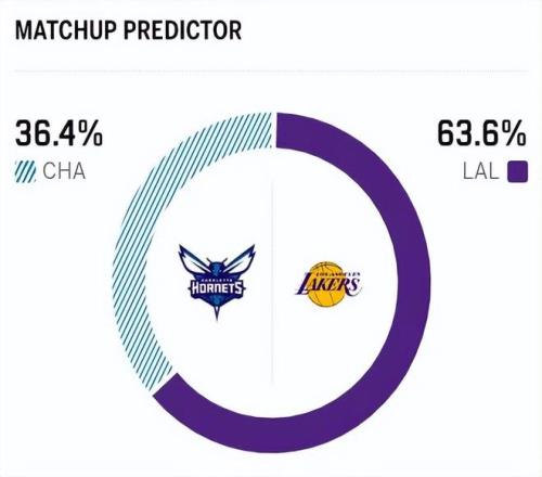 这是两队本赛季的第二次交锋,上一场交手,湖人队以10分之差大胜黄蜂。赛前,美媒ESPN对本场比赛进行了胜率预测,湖人胜率为63.6% ,优势明显,黄蜂队胜率则仅有36.4%。